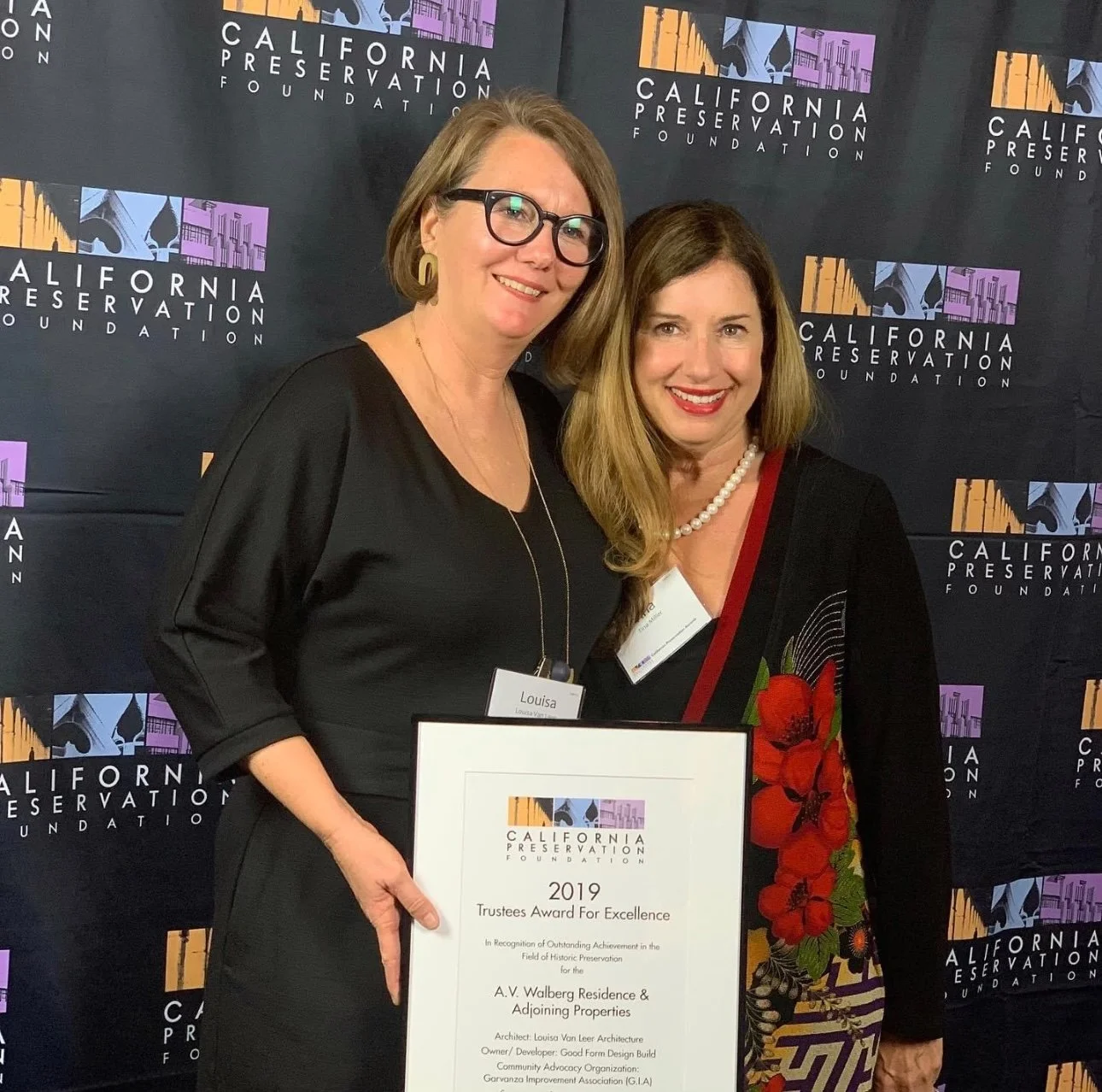 Tina has received numerous awards and recognition for her advocacies. She was a recipient of two HPHT awards: one for the exterior restoration of an 1886 home with ties to the U.S. Suffragist movement that she led as Co-Chair of the GIA, and one for the sensitive second-story addition to her own home that ended up exceeding historic guidelines. She won a local competition with a realtor to launch the “Paint the Town” effort where they successfully located and painted a neighborhood home in dire need of exterior restoration for a fixed-income resident. The L.A. Conservancy and the California Preservation Foundation (CPF) also granted her awards for preserving two historic homes while appropriately and accurately following the State of California’s model for adding infill housing within a historic neighborhood, the only grassroots community effort awarded that year amongst top architectural firm awardees for Union Station restoration and Google’s LA HQ adaptive reuse of the Hughes Hangar in Playa del Rey.